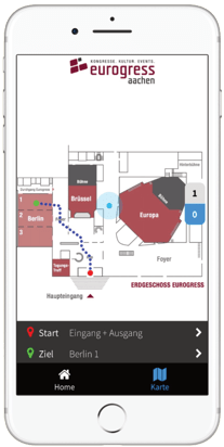 vis.Navigator kombiniert ein modernes Indoor-Navigations-System mit einem Gebäude-Informations-System und stellt gleichzeitig die technologische Basis für hauseigene Veranstaltungs Apps bereit.